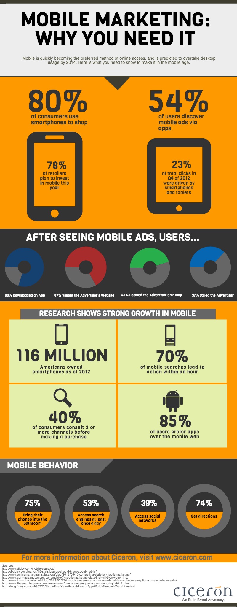 According to CNN, Mobile devices are now accounting for almost 55 percent of nationwide internet usage in January of this year. The amount of users on smartphones and tablets continues to skyrocket, marketers can no longer think of targeting mobile as secondary to desktop digital media strategies. First and foremost, the website must be mobile and tablet friendly, in other words, responsive to all types and form factors for all kinds of devices including iPads, iPhones, Android smartphones and tablets with optimized user interface and user experience. A website which is not mobile friendly can not only damage a company’s brand but lose valuable traffic from these mobile devices. Smart marketers will develop guidelines for mobile marketing strategies or will lose to their competitors. Here are the ways to optimize your marketing for mobile users and boost sales, clicks and conversions.